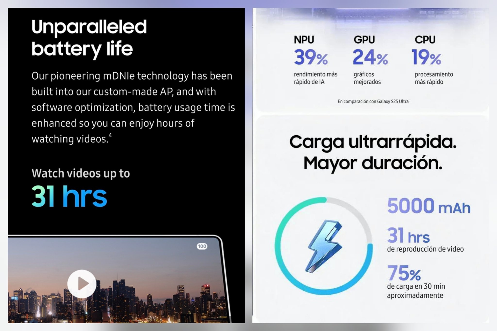 Le truc marrant du jour Il ne reste que 3 jours avant la présentation de la gamme S26 et des images publicitaires fuitent comme celle ci Certains ont précisé que c'était exactement le même chiffre d'autonomie en lecture vidéo qu'annoncé pour le S25 Ultra l'an passé 😁 évidemment quand on est hyper conservateur faut pas s'attendre a des miracles -