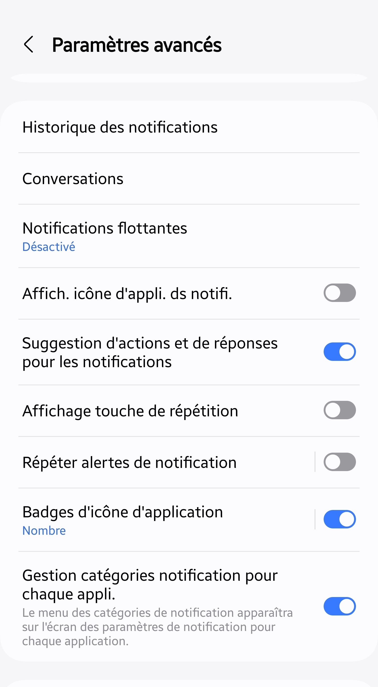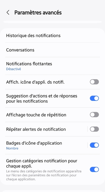 Tu vas dans notifications, puis : et tout en bas tu actives la dernière option. Ensuite tu pourras personnaliser les sons pour chaque application voulue.