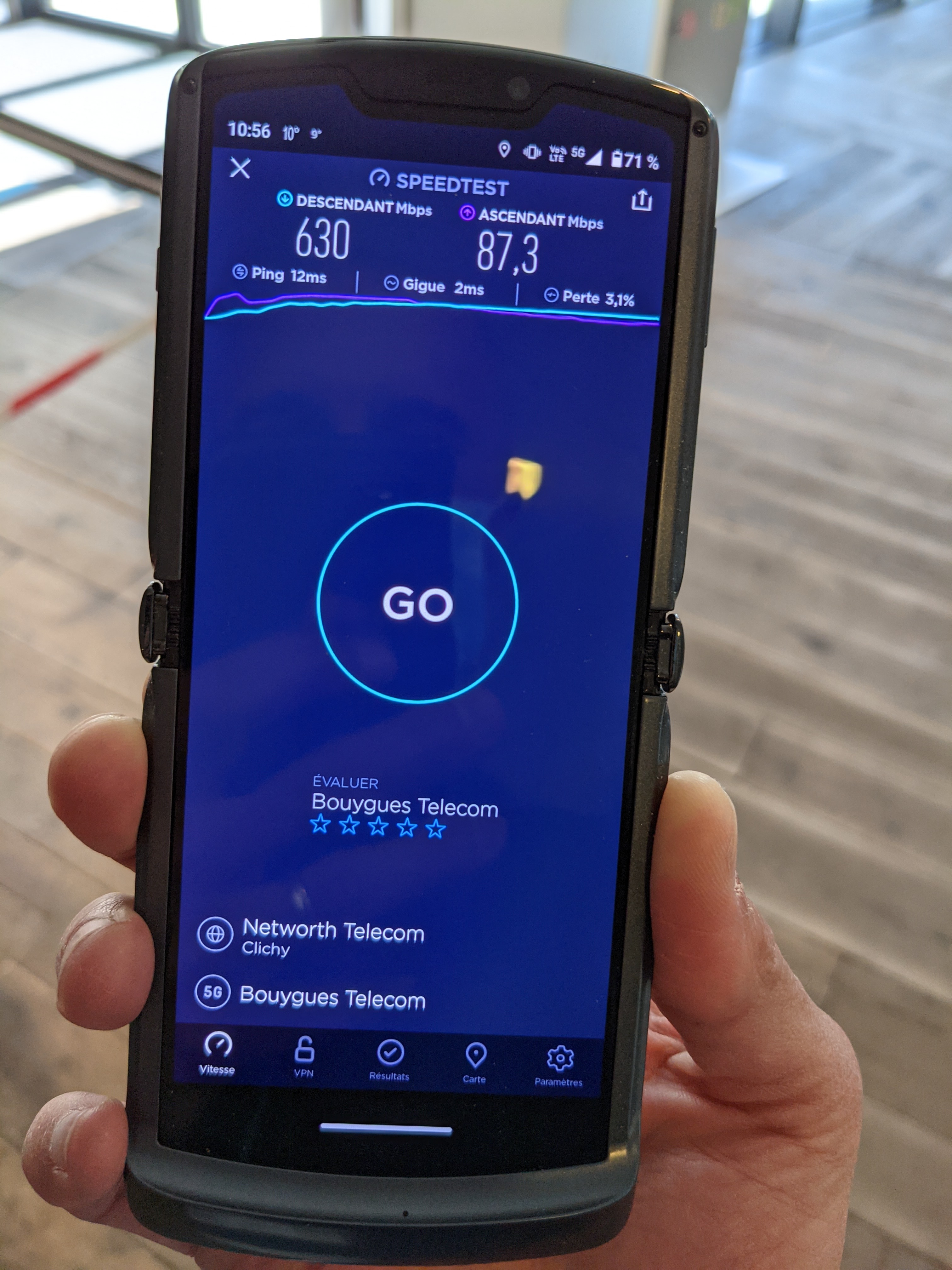 Virgile Posté(e) le 27 avril 2021 Signaler Posté(e) le 27 avril 2021 Petit test de débits 5G rapidement avec le Motorola RAZR 5G sur le réseau de Bouygues Télécom, par le Google Pixel 5 : Citer